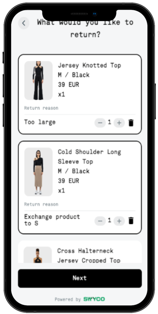 In the fast-paced world of fashion and lifestyle, returns are inevitable. Swyco’s Returns Management service provides an efficient, end-to-end solution for handling returned items. We understand the significance of this process and ensure that items are managed responsibly and sustainably. With Swyco, you can rest assured that returned products are ready for recommerce, contributing to a circular economy.